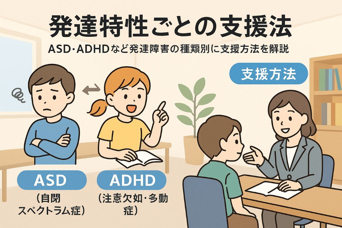 ASDは「社会的コミュニケーションの障害」と「限定された興味や行動」が特徴です。ADHDは「不注意」「多動性」「衝動性」が主な症状となります。LDは「読む・書く・計算する」など特定の学習分野に困難が生じる障害です。アスペルガー症候群やトゥレット症候群も特性に応じた支援が必要です。